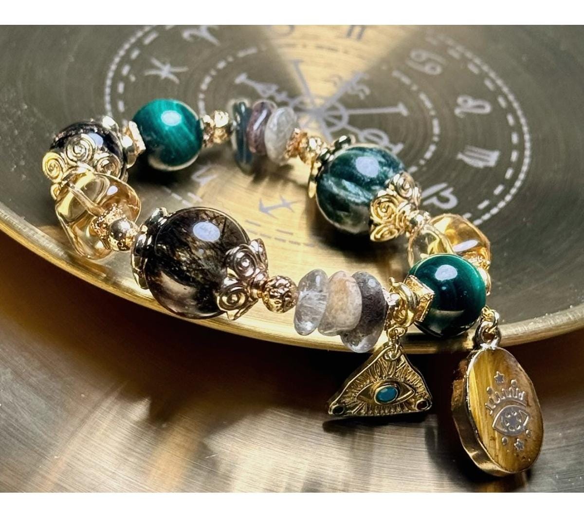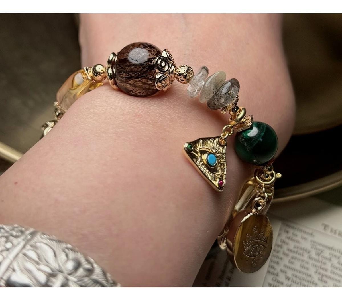 孔雀石/黄水晶/花幽靈/緣龍晶/咖啡鈦/黄虎眼