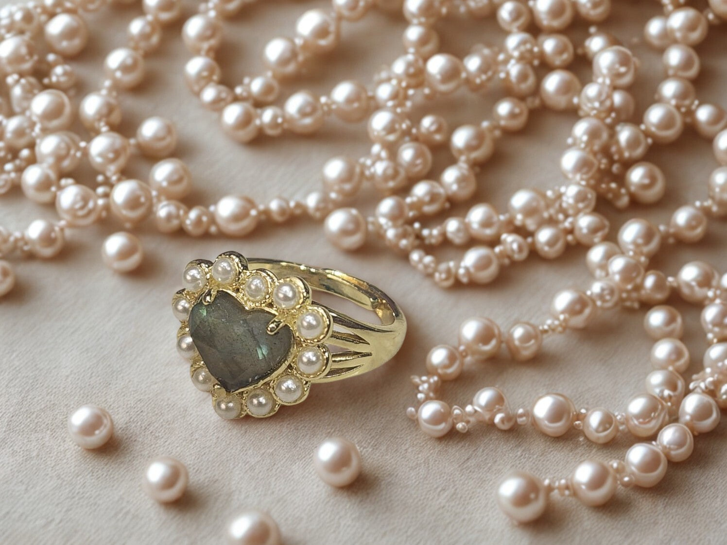 心之遙想 ‧ 拉長石‧ 晶石淡水珠戒指