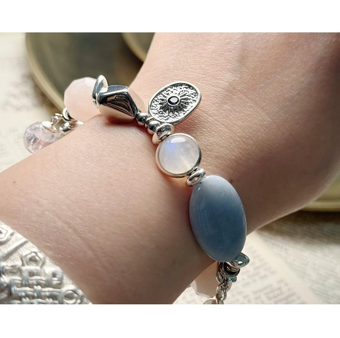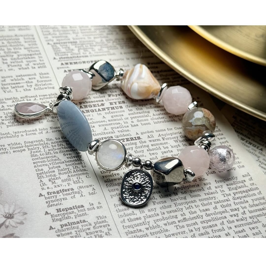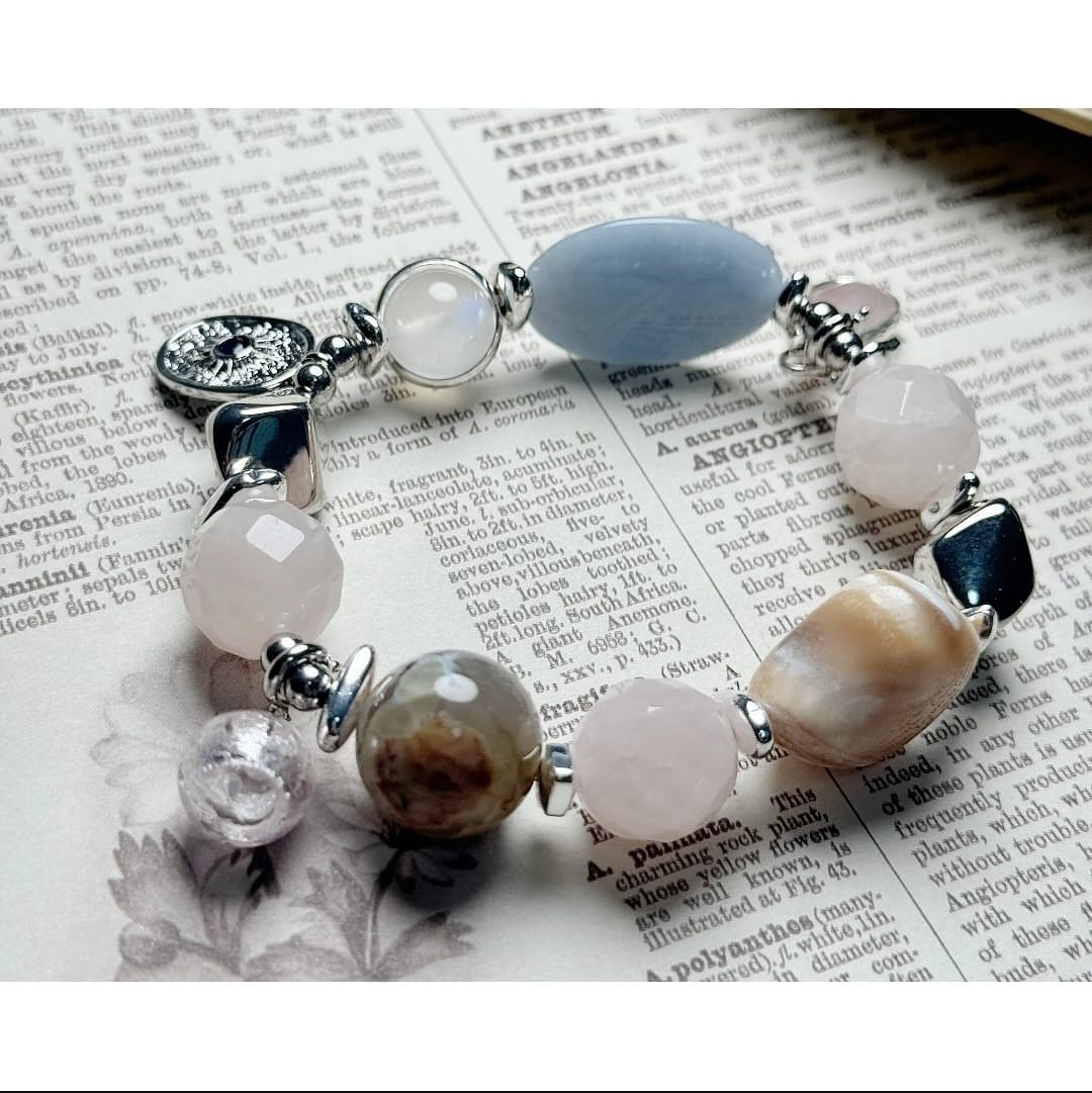海貝/天使石/粉水晶/帶皮藍紋瑪瑙/月亮石