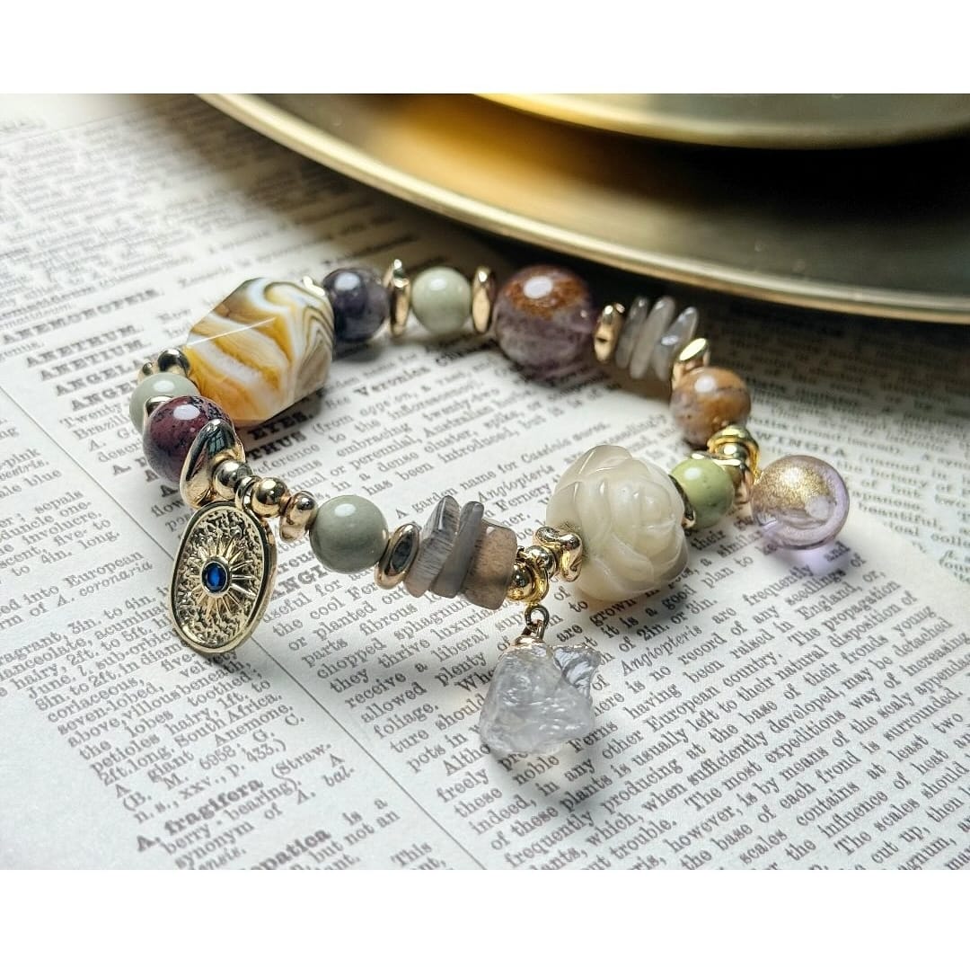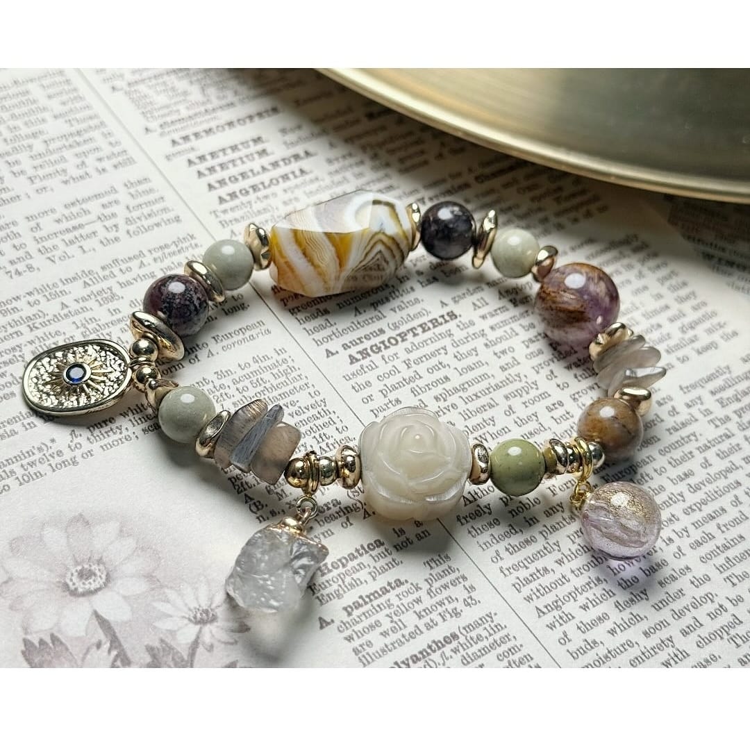 白玉菩提/抹茶阿拉善/彩舒俱來共生/黑金太陽石/紫幽靈/瑪瑙石